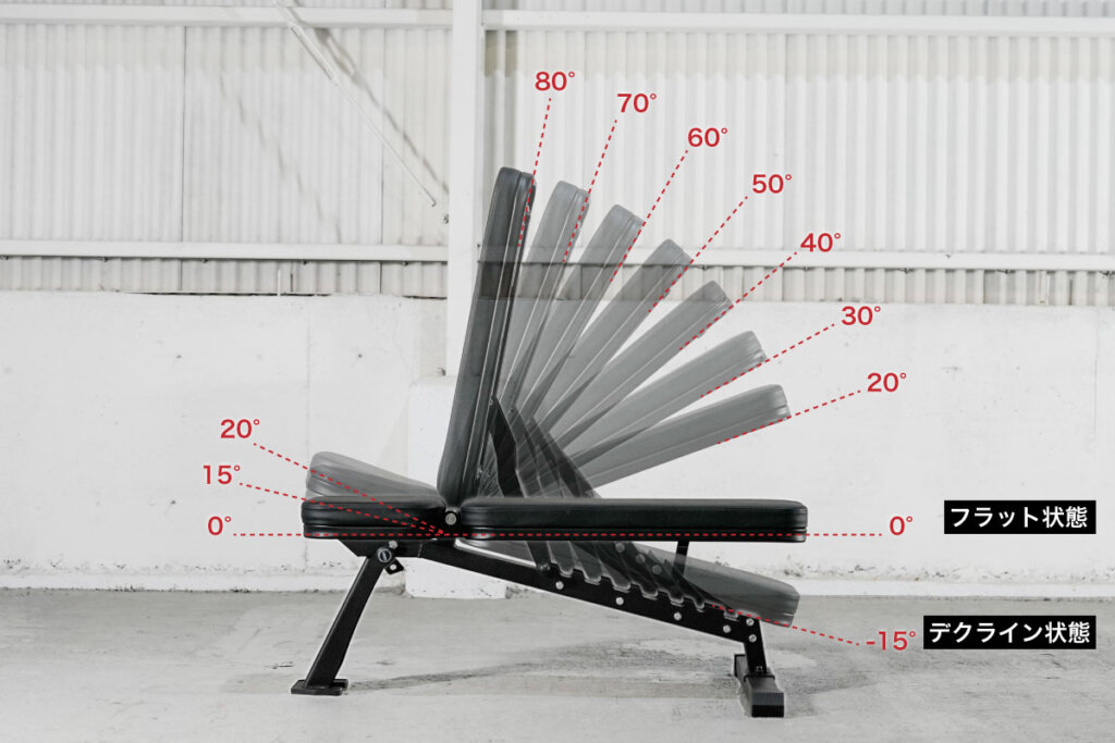 ・マルチポジションベンチ:背面6段階角度×座面3段階